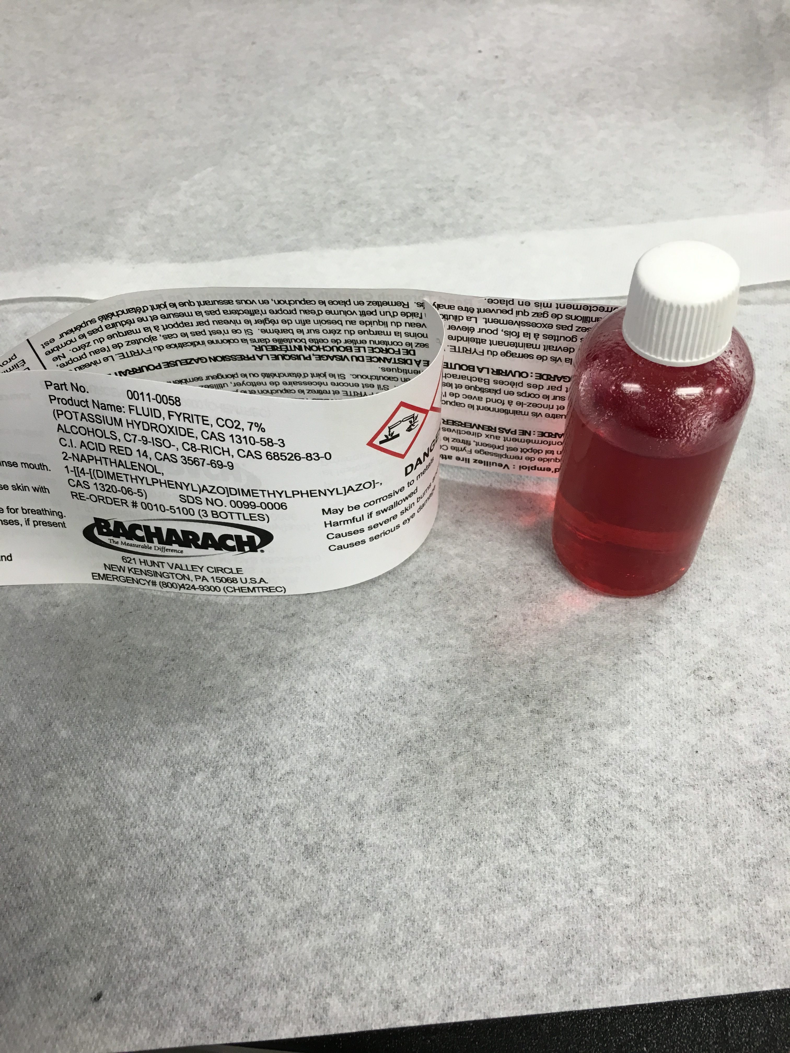- Fluid: The fyrite fluid is mostly water. For the CO2 fyrite, the “active ingredient” is potassium hydroxide (KOH). The CO2 solution is colored red for identification (The O2 solution is blue). The O2 solution has a bunch of ingredients and I have’t bothered to figure out how it works since I rarely use it (but maybe I will later).